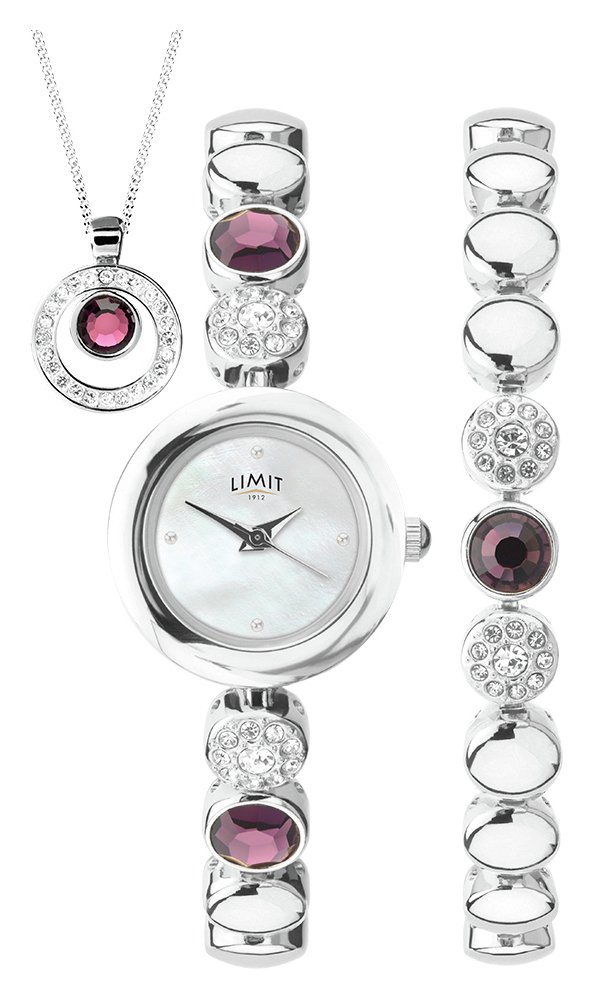 Limit Ladies Silver Bracelet. Sekonda 2533G76 Womens Crystal Locket Pendant Bangle and Bracelet Strap Watch Gift Set Rose Gold.